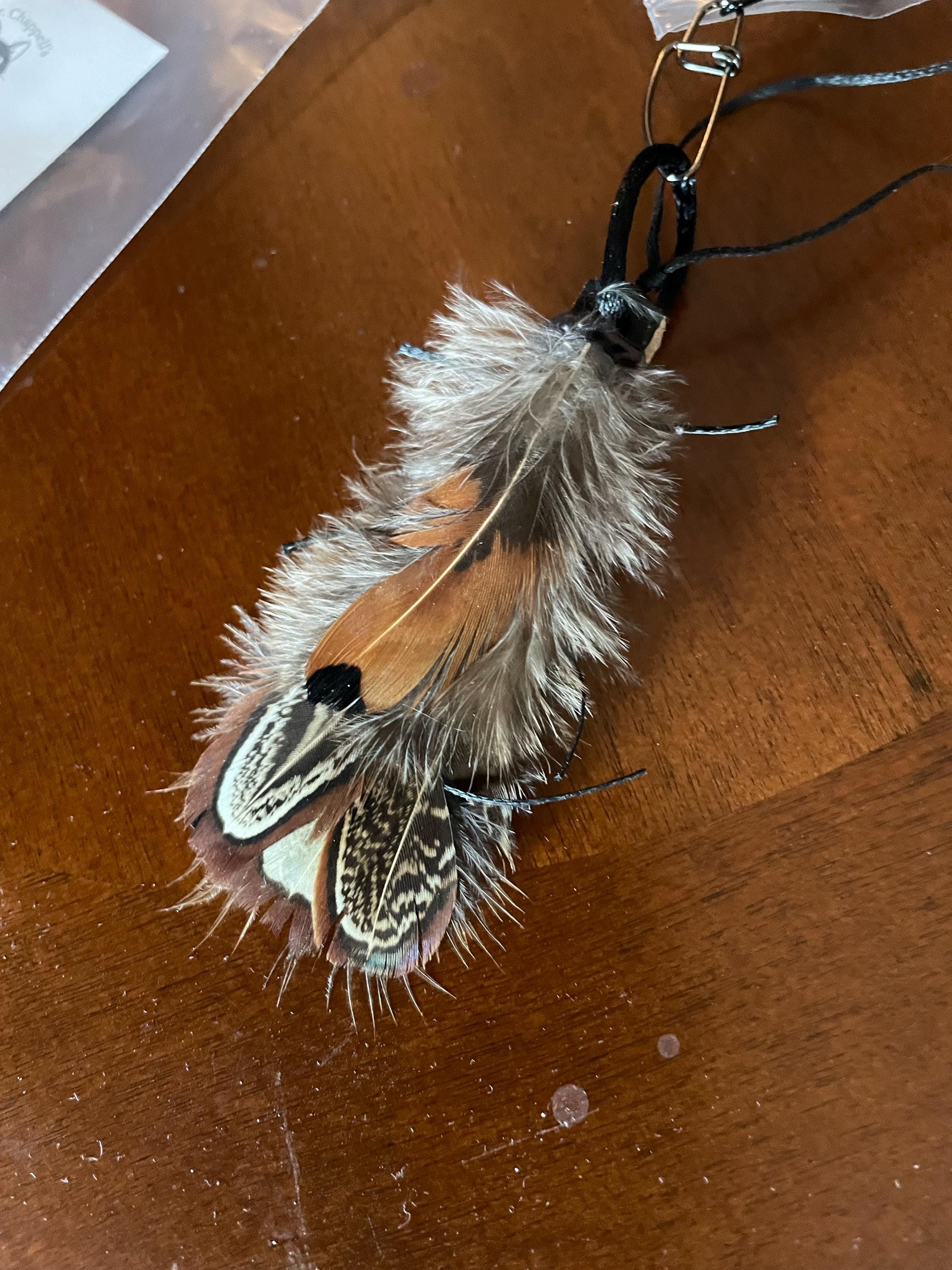 THIS IS MADE WITH REAL FEATHERS, AS SUCH IT IS NOT INDESTRUCTIBLE! IT IS INTENDED TO BE USED AS INTERACTIVE TEASER TOY UNDER HUMAN SUPERVISION or YOU CAN PROVIDE TO YOUR FURBABY AS A “STALK AND DESTROY” FLOOR TOY.