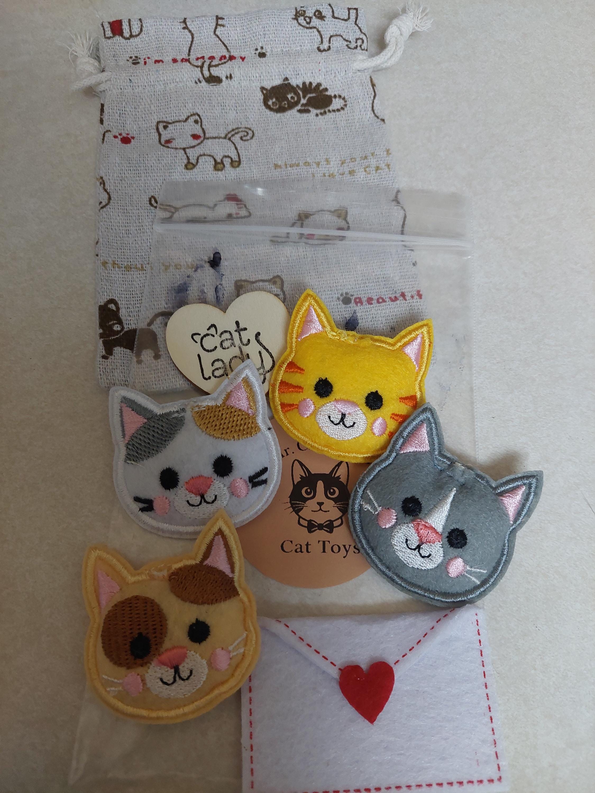 This is our latest version of "toss, scatter, and chase toys". The set of 4 colorful felt cat faces comes with it’s very own storage pouch. Plus you can choose between catnip infused or not. Mr. Chappell likes it when I toss a felt toy towards him as he scatters and chases it along the floor. Easy peezy fun!! (And it keeps him out of my fur bins)